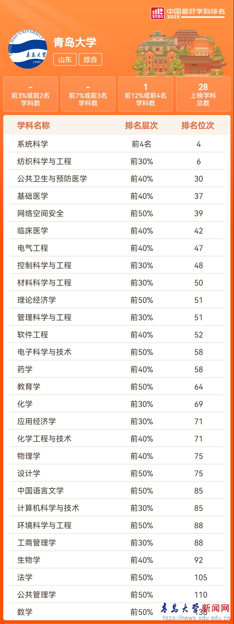 我校28个学科上榜“2025软科中国最勤学科排名”