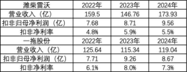 但全体上看,潍柴雷沃的净利率相对较低,2022年-2024年扣非净利率为4。8%、5。9%、5。5%。
