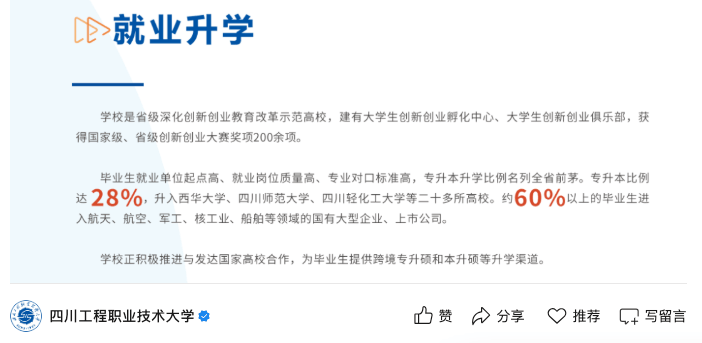 学校2025年报考指南显示,60%以上结业生都能进入航天、航空、军工、核工业、船舶等范畴的国有大型企业、上市公司。