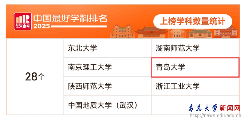 我校28个学科上榜“2025软科中国最勤学科排名”